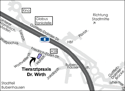 Biegen Sie im Kreisverkehr Richtung Tankstelle Globus ab. Biegen Sie dann rechts in die Lanzstraße ein und unterqueren Sie die Autobahnbrücke. Bleiben Sie auf der Vorfahrtstraße (Friedrich-Ebert-Straße). Nach ca. 500 m erreichen Sie unsere Praxis (neben Bäckerei Knauber).